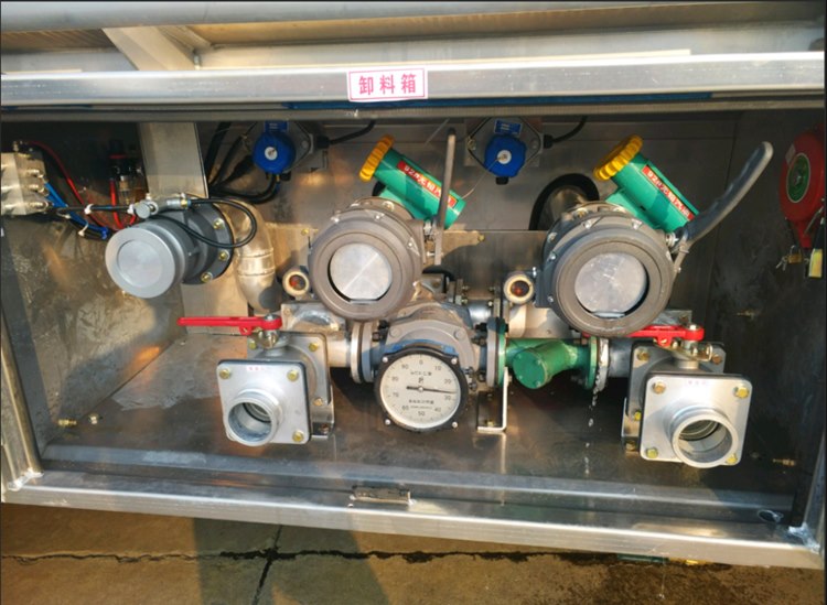 3.歐標(biāo)下裝油系統(tǒng):氣動海底閥(緊急切斷裝置)、廢油氣回收系統(tǒng)、防溢流系統(tǒng)、API閥門(下裝油口,配圖如下)、變徑接頭、邊板閥、油耗顯示器、靜電卷盤。